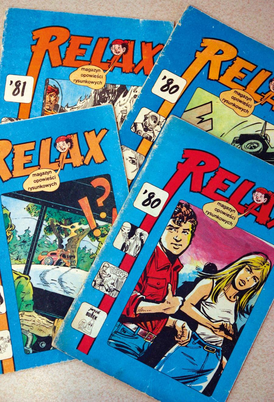 Pierwszym czasopismem w Polsce poświęconym wyłącznie komiksom był magazyn „Relax” (Krajowa Agencja Wydawnicza), wydawany w latach 1976–1981. Redakcja miała ambitne cele: łączyć rozrywkę z edukacją i propagandą, a jednocześnie otwierać czytelników na zachodnią kulturę popularną, co wpisywało się w klimat epoki gierkowskiej. Na czele tytułu stanął Henryk Kurta, znawca komiksu frankofońskiego, a kluczową rolę odegrał Grzegorz Rosiński, pełniący funkcję kierownika artystycznego. Rosiński, już wtedy uznany twórca, autor przygód „Thorgala”, nie tylko przyciągał czytelników swoim talentem, ale też, jak wspominali współpracownicy, służył jako alibi przedsięwzięcia, uważanego przez niektórych za „niegodne socjalizmu”. Sukces „Relaxu” przeszedł najśmielsze oczekiwania. Początkowy nakład 100 tys. egzemplarzy szybko okazał się niewystarczający. Już trzeci numer wydano w nakładzie dwukrotnie wyższym, a według niektórych źródeł w szczytowym okresie popularności drukowano nawet 300 tys. egzemplarzy. „Komiks ma tę zaletę, że potrafi w prosty sposób opowiedzieć skomplikowane historie. To medium, które łączy pokolenia” – mówił Janusz Christa w książce „Zatrzymane w kadrze” Daniela Koziarskiego i Wojciecha Obremskiego, tłumacząc ogromną popularność tej formy sztuki. Było to widoczne z każdą dekadą coraz bardziej.