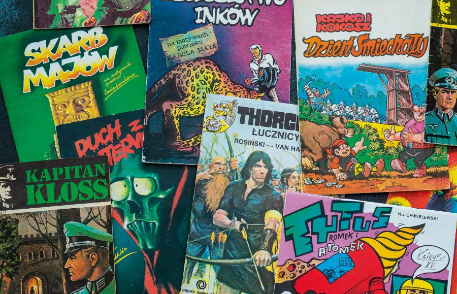 Okres międzywojenny przyniósł rozkwit komiksu prasowego. Popularne magazyny takie jak „Karuzela” czy „Świat Przygód” publikowały regularnie ich serie, często adaptujące znane powieści przygodowe. Niestety, ten obiecujący rozwój został brutalnie przerwany przez wybuch II wojny światowej. Po 1945 r. komiks w Polsce znalazł się w trudnej sytuacji. Władze komunistyczne początkowo postrzegały go jako „zgniły produkt kultury zachodniej”, a w mediach dyskutowano o szkodliwym wpływie rysunków na psychikę dzieci. Paradoksalnie, to właśnie w tym okresie narodziły się tak kultowe serie jak „Tytus, Romek i A’Tomek” Henryka Jerzego Chmielewskiego (Papcia Chmiela) czy „Kapitan Żbik” – milicyjna seria, która mimo propagandowego charakteru zyskała ogromną popularność.
