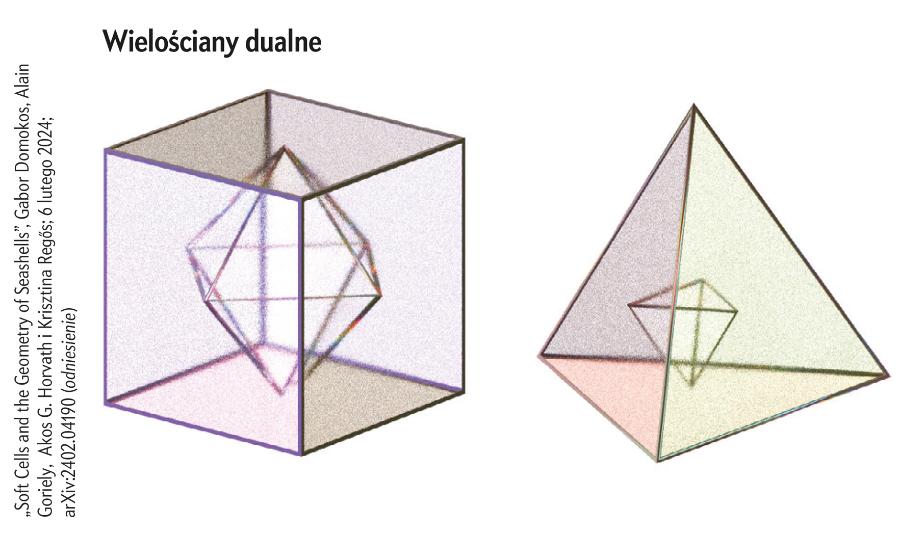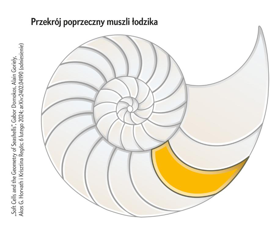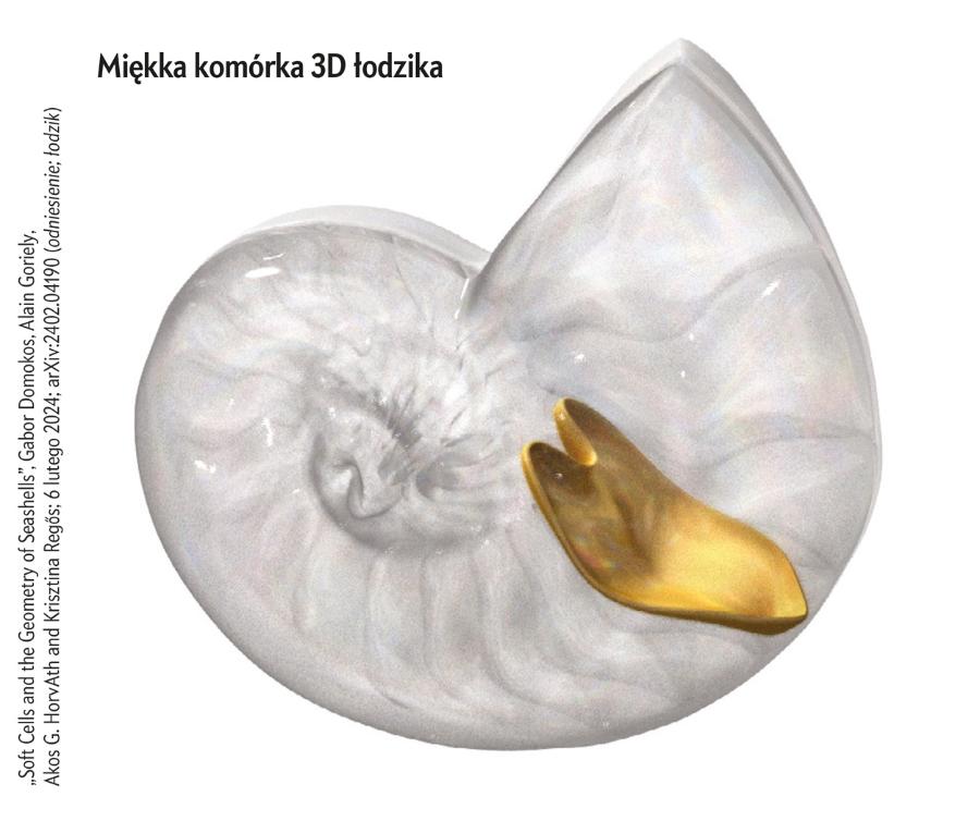 Chociaż matematycy wcześniej nie wyodrębniali miękkich komórek – nikt ich nie zauważył ani tym bardziej nie nazwał w publikacji naukowej – są często spotykane w sztuce i w naturze, na przykład w architekturze Zahy Hadid zwanej „królową krzywizny” lub jako kształty pasów zebry. Krisztina Regős, studentka Domokosa, znalazła pierwszą naturalną, trójwymiarową miękką komórkę ukrytą w komorach muszli łodzika – obiekt ten stał się ikoną zbieżności matematyki i biologii. „Mieliśmy go cały czas przed oczami” – mówi Regős. Powiązanie komórek z tak znanym kształtem sprawiło, że Domokos zaczął się obawiać, że ktoś go ubiegnie. Polecił swojemu zespołowi zachować tajemnicę dopóty, dopóki tekst o ich odkryciu nie będzie gotowy do publikacji (ukazał się we wrześniu 2024 roku). Rok wcześniej, pod koniec wizyty w pizzerii, Domokos zabrał nawet menu z moimi rysunkami – złożył je i schował do kieszeni. Dla bezpieczeństwa.