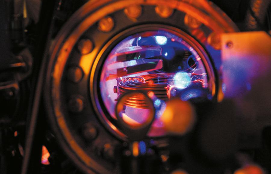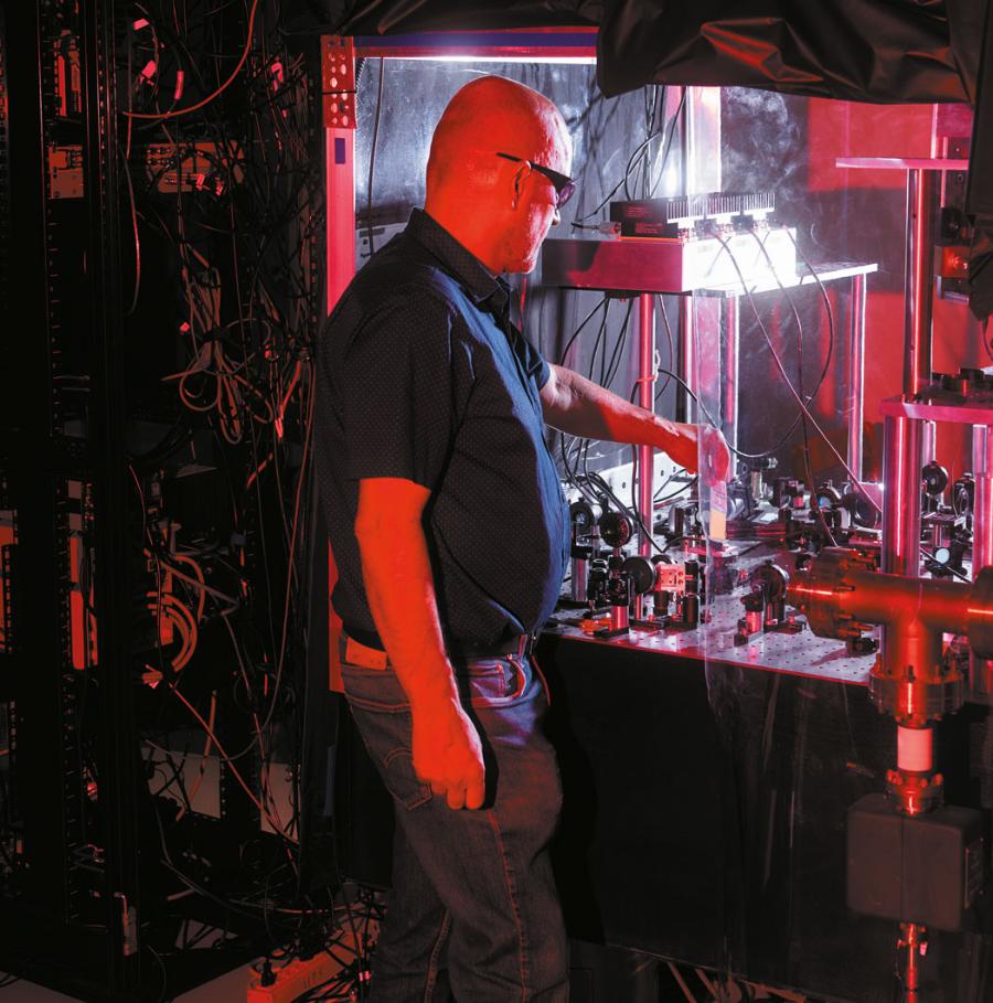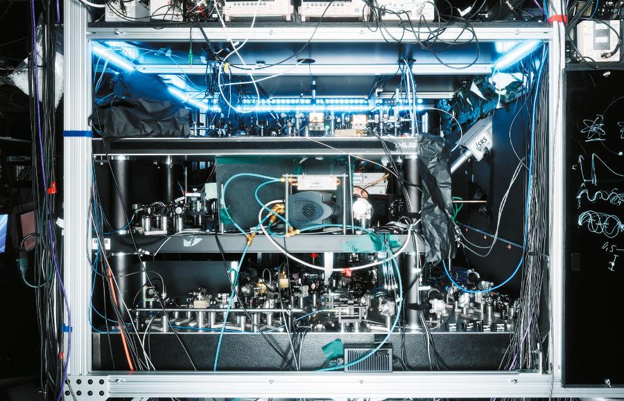 W laboratorium położonym u podnóża Gór Skalistych, pośród labiryntu soczewek, luster i innych urządzeń optycznych przymocowanych do odpornego na wibracje stołu, aż do sufitu wznosi się aparatura w kształcie komina. Podczas mojej ostatniej wizyty srebrzysta rura zawierała chmurę tysięcy przechłodzonych atomów cezu, które wystrzelono w górę za pomocą laserów, a następnie pozwolono im opadać powoli w dół. Z każdym cyklem maser – działający na tej samej zasadzie jak laser, lecz w zakresie mikrofal – uderzał w te atomy, wyrzucając elektrony z ich zewnętrznych powłok do innego stanu energetycznego.