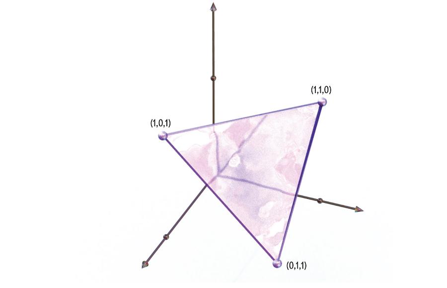 Kształty, do których często wracam w moich badaniach, są zarówno proste, jak i złożone. Proste to te, których dwuwymiarowe wersje poznajemy w szkole: trójkąty, kwadraty, 12-kąty i inne wielokąty wypukłe (wielokąt jest płaskim kształtem utworzonym z odcinków prostych; wielokąt wypukły ma wszystkie kąty wewnętrzne mniejsze od 180°). Stają się złożonymi, gdy rozważa się ich więcejwymiarowe wersje, zwane politopami, i analizuje ich własności matematyczne oraz powiązania między nimi. Na przykład jeśli ktoś próbował zoptymalizować ograniczony układ liniowy (np. w celu minimalizacji czasu potrzebnego na zwrot rowerów elektrycznych do ich wypożyczalni), natknął się na politop. Jeśli można określić matematycznie jakieś położenie za pomocą współrzędnych 0 i 1, to otoczka wypukła punktów o tych współrzędnych (najmniejszy wypukły kształt obejmujący te punkty) stanowi politop. Przykładowo trzyelementowy zbiór podzbiorów o rozmiarze 2 tworzy trzy punkty o współrzędnych (1,1,0), (1,0,1) i (0,1,1), których otoczka wypukła jest trójkątem w przestrzeni trójwymiarowej. Takie podejście poszerza zakres możliwości analiz matematycznych i wzmacnia powiązania między różnymi dziedzinami matematyki. To, co wydaje się trudne do stwierdzenia w jakiejś dziedzinie, może okazać się łatwiejsze po skorzystaniu z politopów. Właśnie takie relacje między różnymi obszarami matematyki, a także badanie politopów jako samoistnych obiektów, sprawiają, że interesuję się tymi pozornie prostymi, ale w gruncie rzeczy skomplikowanymi kształtami.