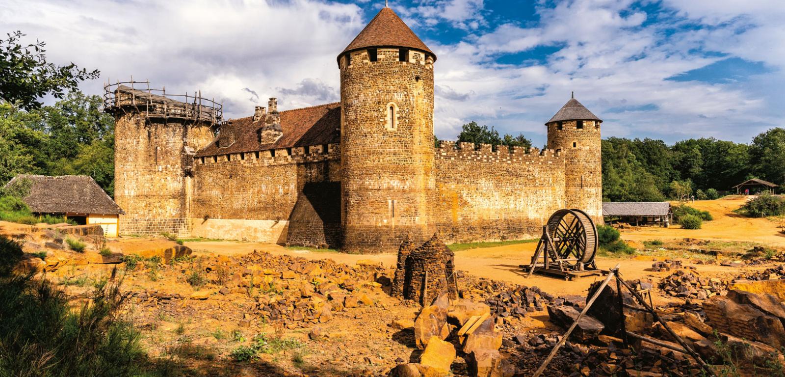 Nie jest to scena z XIII w., tylko sprzed siedmiu lat, z zamku, który od 1998 r. wznoszony jest przez kilkudziesięciu rzemieślników i badaczy metodami sprzed 800 lat. Celem jest rekonstrukcja starych technik, sprawdzenie, ile wapna potrzeba do zbudowania muru, jak długo trwa kładzenie sklepienia, jak zachowuje się świeżo ścięty dąb. To największy w Europie eksperyment archeologiczny.