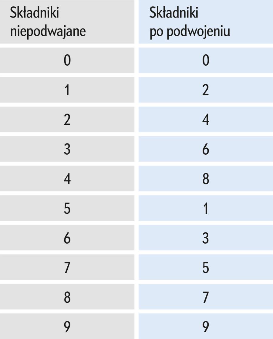 3. Zsumuj wszystkie cyfry (nie liczby; np. po podwojeniu 7 do sumy wchodzi 1+4=5, a nie 14).