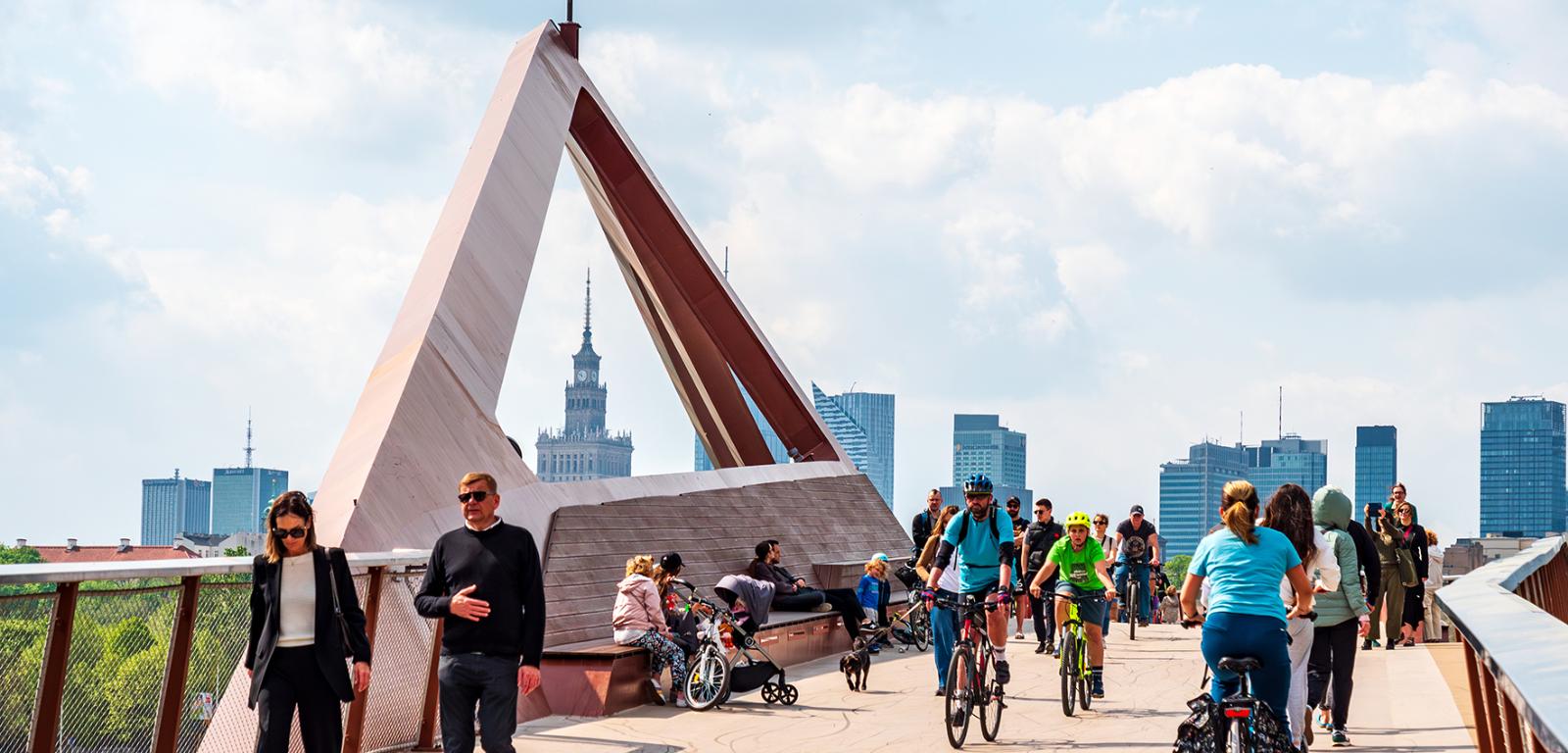 Projekt Nowe Centrum Warszawy, realizowany od 2019 r., zakłada przebudowę wielu śródmiejskich ulic i placów, aby zwiększyć ich funkcjonalność, atrakcyjność, dostępność i inkluzywność dla mieszkańców stolicy. Przybywa zazielenionych przestrzeni publicznych – placów, skwerów i deptaków, wyremontowanych lub stworzonych od zera. Powstają nowe przejścia dla pieszych i ścieżki rowerowe, likwidowane są bariery architektoniczne. Wszystko po to, by centrum przeobraziło się w jedną, dużą i spójną strefę pieszą – dostępną dla każdego. Współautor analizy, dr Mirosław Grochowski z Laboratorium Badań Miejskich WGiSR, docenia, że urbanistyczna koncepcja Nowego Centrum Warszawy ewoluuje i rozszerza się w stronę doliny Wisły oraz położonej po drugiej stronie rzeki Starej Pragi. – Centrum miasta może wykraczać poza administracyjne granice dzielnicy śródmiejskiej. Przed II wojną światową Targowa była główną reprezentacyjną ulicą Pragi z kamienicami i gmachami publicznymi. Po wojnie, gdy lewobrzeżna część miasta leżała w ruinach, faktyczne funkcje centrum przeniosły się na Pragę. Dobrze więc, że dzięki oddanej w ubiegłym roku kładce pieszo-rowerowej oraz rozpoczętej przebudowie ulicy Okrzei, która jest jej przedłużeniem, Stara Praga stanie się częścią Nowego Centrum Warszawy. Oba brzegi Wisły znów zbliżą się do siebie – mówi ekspert doradzający miastu.