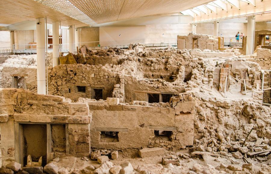 Jedna z najbardziej uznanych naukowo hipotez wiąże historię Atlantydy z katastrofą wulkaniczną na wyspie Thira (dzisiejszy Santoryn), która ok. 1600 r. p.n.e. doprowadziła do upadku części kultury minojskiej. Już w 1939 r. grecki archeolog Spiridon Marinatos zasugerował, że źródłem mitu o zatopionej wyspie mogła być właśnie erupcja wulkanu. Jego teza zyskała na wiarygodności po rozpoczęciu w latach 60. wykopalisk w Akrotiri, na południu Santorynu. Naukowcy odkryli doskonale zachowane domy, freski i ceramikę, przykryte popiołem niczym w Pompejach. Datowanie radiowęglowe i analizy popiołów, prowadzone m.in. przez zespół z Aarhus Universitet, potwierdziły, że wybuch był jednym z największych w dziejach, a jego skutki odczuła nawet Kreta. Zniszczenia i tsunami mogły znacząco osłabić państwo minojskie, którego potęga opierała się na żegludze i handlu. Wielu archeologów jednak wskazuje, że choć Thira dostarcza przekonującego obrazu nagłej katastrofy, Platon pisał o wydarzeniach wcześniejszych o tysiące lat. Ponadto Atlantyda miała znajdować się za Słupami Heraklesa, a nie na Morzu Egejskim. Te różnice czasowe i geograficzne podważają teorię egejską.