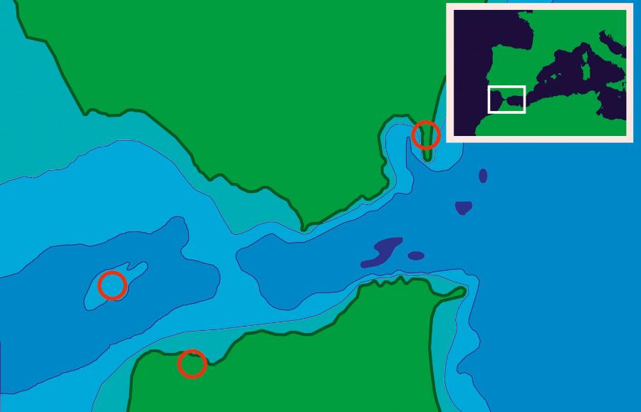 Inny kierunek poszukiwań prowadzi na zachód, w okolice Cieśniny Gibraltarskiej. W 2001 r. francuski geolog Jacques Collina-Girard w artykule opublikowanym w prestiżowym „Comptes Rendus de l’Académie des Sciences” zaproponował hipotezę, jakoby Atlantyda mogła mieć coś wspólnego z wyspami leżącymi pod wodą u wybrzeży Maroka. Badacz oparł się na analizach batymetrycznych (ukształtowania dna zbiorników wodnych), wskazując istnienie płytkich podmorskich struktur w rejonie tzw. przylądka Spartel. Na ich podstawie doszedł do wniosku, że zatopiony obszar lądowy, znajdujący się na głębokości 60 m, mógł w przeszłości tworzyć archipelag. Teoria zyskała na znaczeniu dzięki badaniom paleogeograficznym, które wykazały, że płaskowyż leżał powyżej poziomu morza w okresie ostatniego zlodowacenia i na początku holocenu. Naukowiec nie wykluczył, że mogła to być wyspa o imponujących rozmiarach, połączona z kontynentem afrykańskim. Jej zatopienie miało nastąpić szybko wskutek gwałtownego podniesienia poziomu oceanu po zakończeniu epoki lodowcowej mniej więcej 12 tys. lat temu.