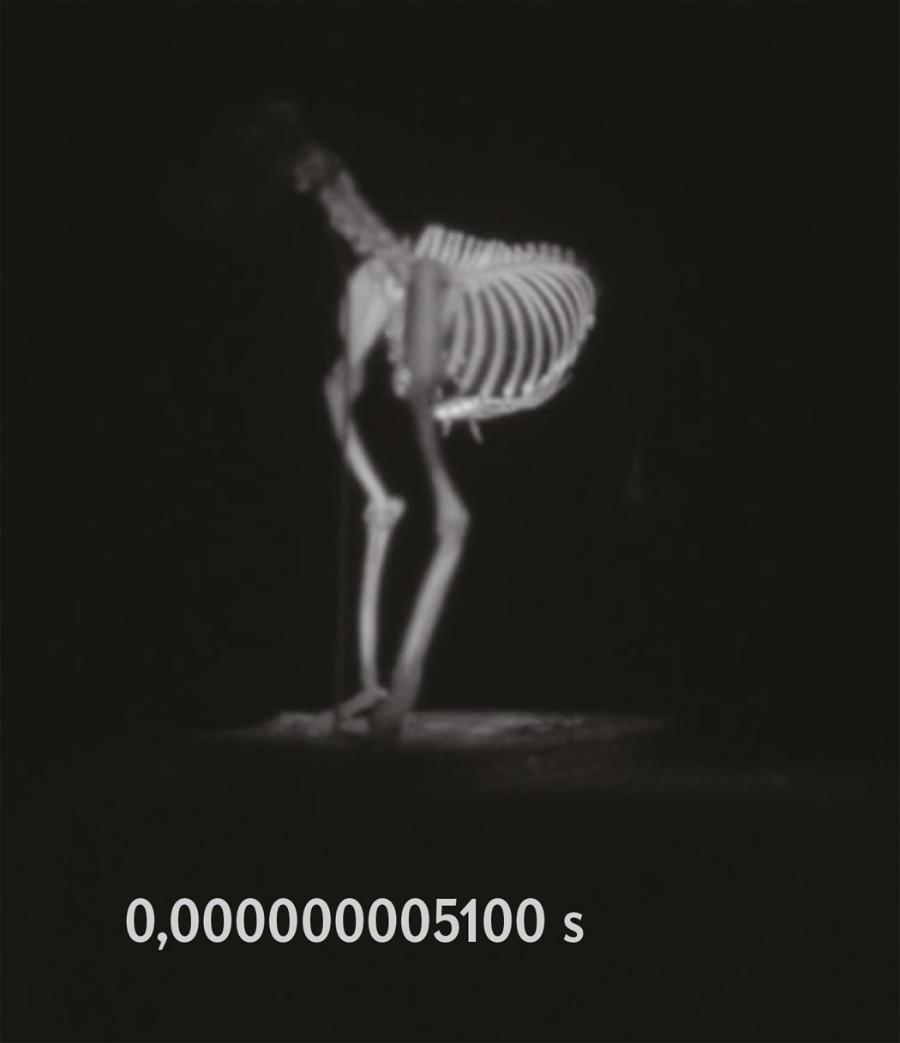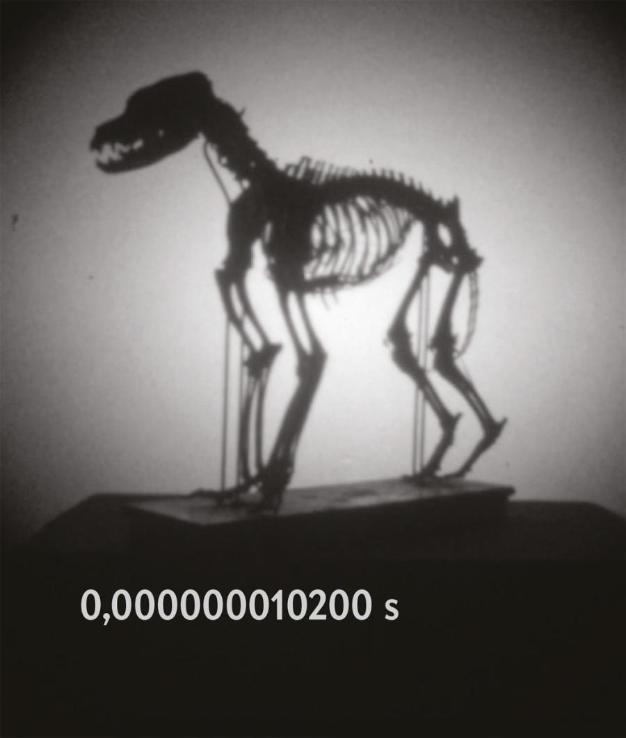 Drugim kluczowym elementem jest właśnie ta kamera. Jedną z pierwszych prób uchwycenia szybkiego ruchu podjął angielski fotograf Eadweard Muybridge w 1878 roku. Wykorzystując serię szybkich ekspozycji udowodnił, że gdy koń galopuje, w pewnym momencie jego wszystkie cztery kopyta odrywają się od ziemi. Czas otwarcia migawki aparatów Muybridge’a wynosił około milisekundy, co było ogromnym osiągnięciem jak na tamte czasy. Obecnie osiągnęliśmy czasy naświetlania o rzędy wielkości krótsze – pikosekundy, a nawet femtosekundy. Aparat, którego użyliśmy, ma czas naświetlania wynoszący zaledwie 0,3 miliardowej części sekundy (czyli 300 pikosekund).