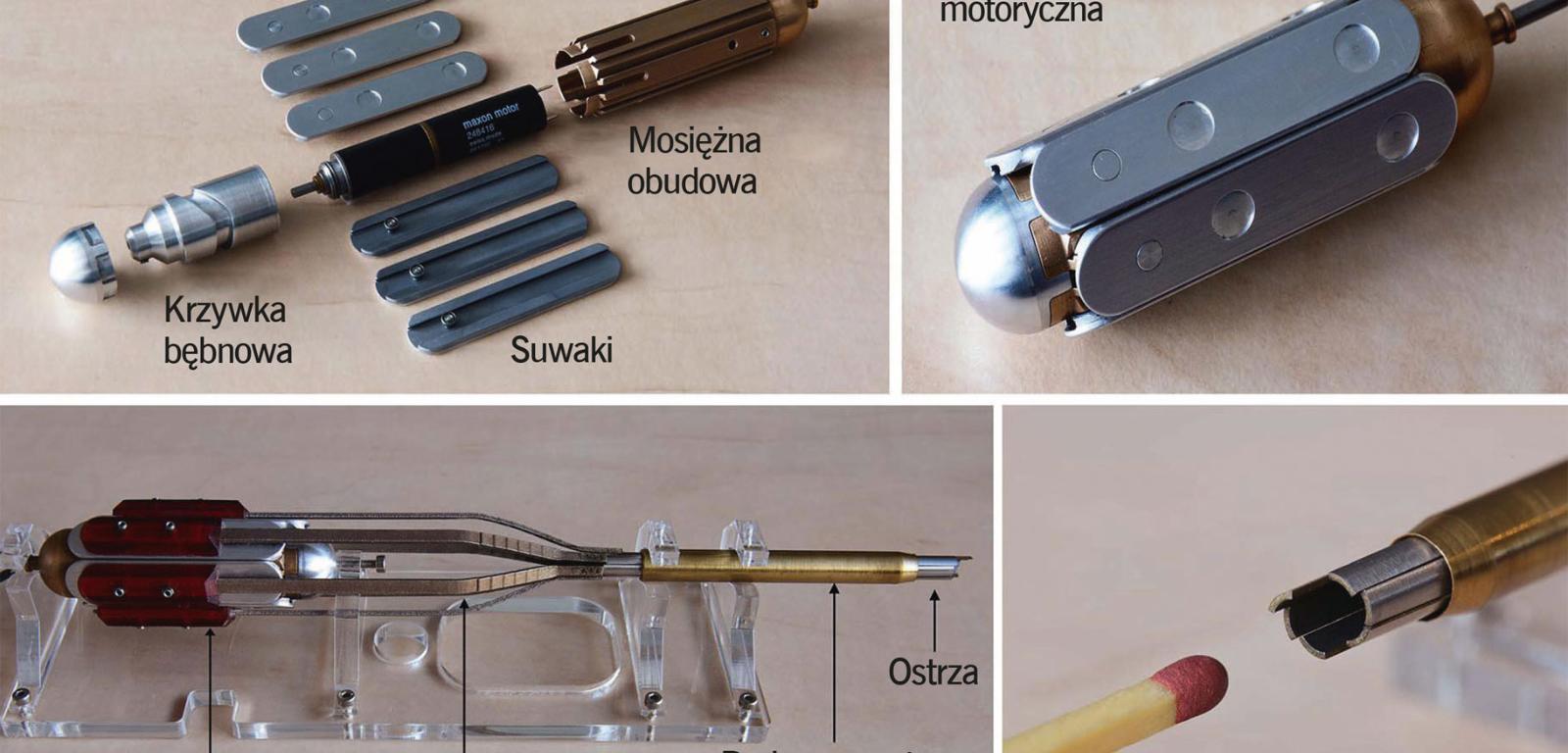 Samice owadziarek (grupa błonkoskrzydłych owadów pozbawionych żądeł) posiadają pokładełko służące do składania jaj w żywych organizmach innych zwierząt. Ten rurkowaty narząd ma wewnątrz blaszkowate twory, których ruchy powodują przesuwanie się jajeczek w kierunku celu. Uczeni z Technische Universiteit Delft (Holandia), bazując na wiedzy uzyskanej od biologów, stworzyli precyzyjne narzędzie dla chirurgów, pozwalające na pobieranie drobnych fragmentów tkanki, takich jak niewielkie guzy czy też skrzepy. Obecnie taka procedura endoskopowa polega na usunięciu tkanki przez jej wyssanie. Staje się to jednak utrudnione w sytuacji, gdy rurka jest węższa i dłuższa. Zaprojektowany przyrząd ma średnicę 7 mm i 8 cm długości. Wewnątrz znajduje się sześć poruszających się niezależnie stalowych blaszek. Urządzenie testowano na materiałach przypominających ludzką tkankę: żelatynie i mielonym mięsie. Okazało się, że sprawuje się bezbłędnie, ale działa wolniej niż klasyczny system ssący. Kolejnym etapem będą już prawdopodobnie badania kliniczne.