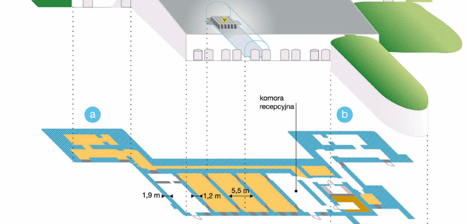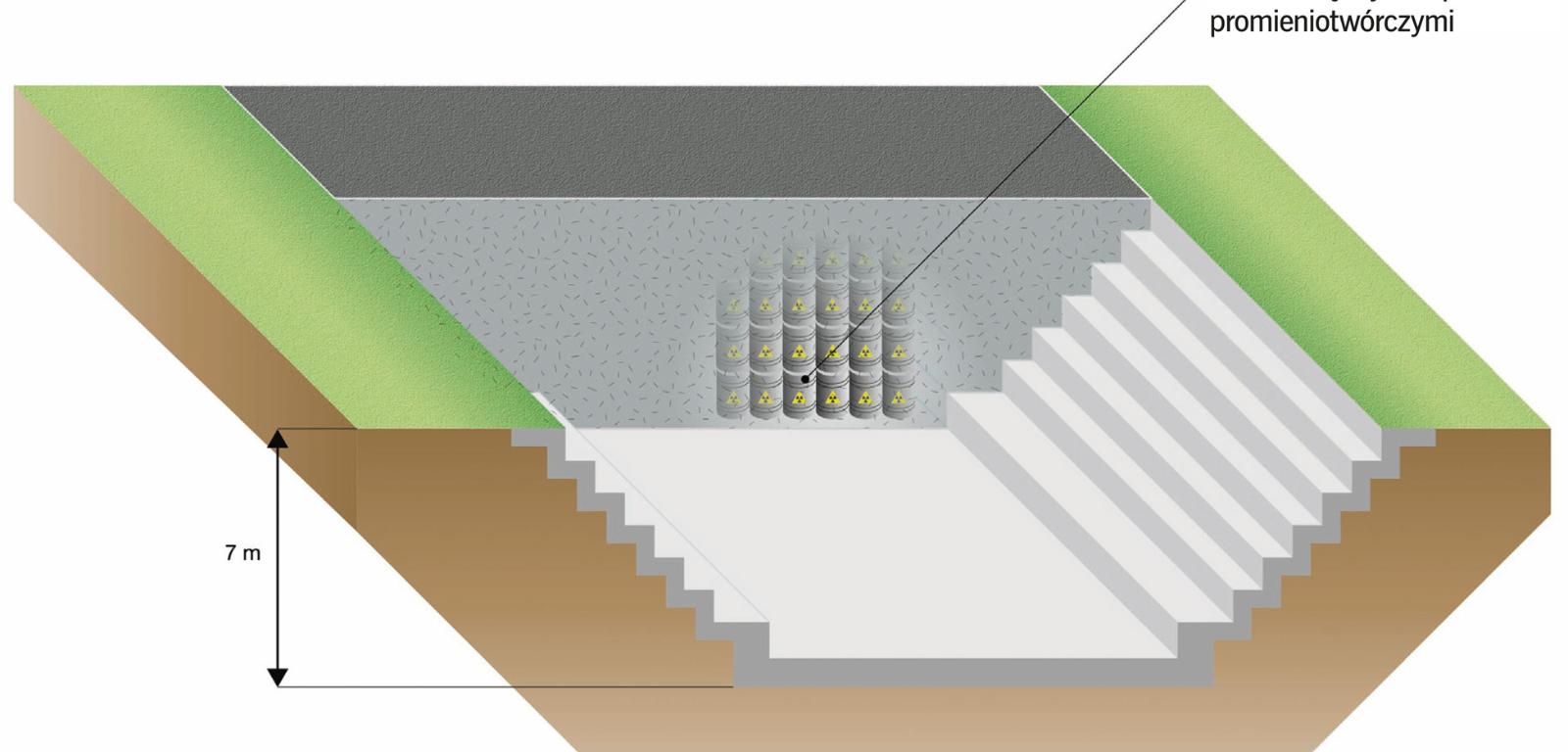 Zużyte zamknięte źródła promieniotwórcze krótkożyciowe nisko- i średnioaktywne składuje się w podziemnym betonowym obiekcie składającym się z 17 komór. Po zapełnieniu komory zostają wypełnione betonem w celu ograniczenia poziomu promieniowania na zewnątrz. Dodatkowo wlot komory jest odpowiednio uszczelniony i zamknięty. Skuteczność stosowanych osłon podlega systematycznej kontroli.