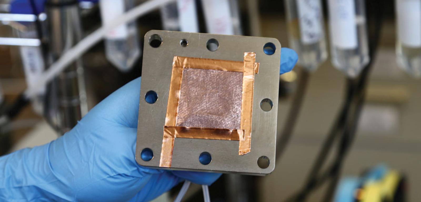 Chemicy z Caltechu Jonas Peters i Theodor Agapie oraz ich współpracownicy przeprowadzili szereg eksperymentów polegających na wprowadzaniu cząsteczek organicznych do katalizatora miedziowego. Okazało się, że pożądane właściwości wykazuje pewna sól organiczna – pirydynian arylu. Tworzy ona na powierzchni miedzi nierozpuszczalną w wodzie warstewkę, która przyciąga cząsteczki dwutlenku węgla, wskutek czego intensywniej reagują one ze sobą, nie spowalniając przebiegu reakcji. Pozwala to otrzymać więcej etylenu, a mniej produktów ubocznych, takich jak metan i wodór.
