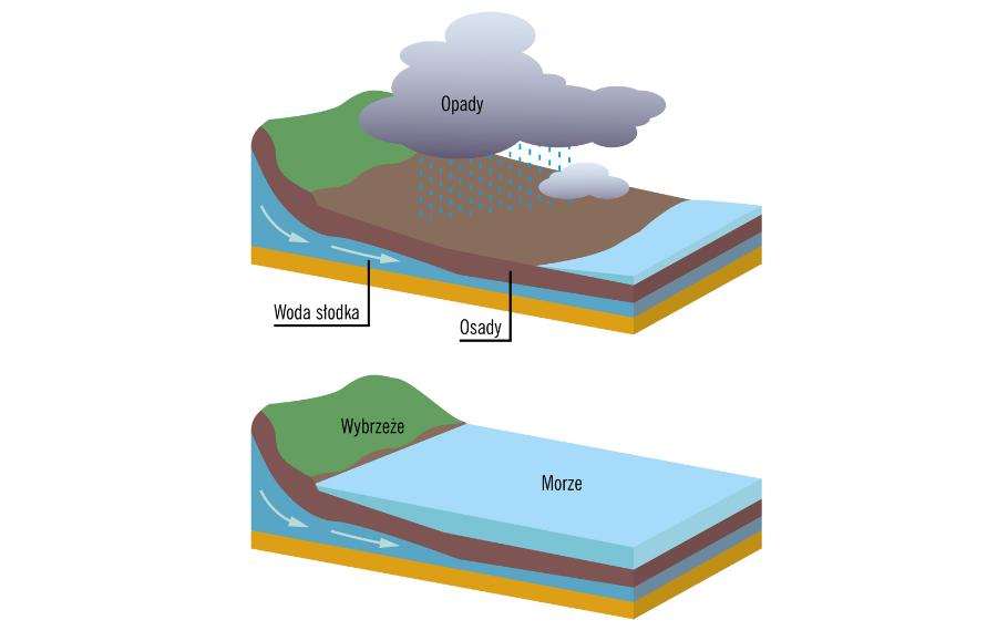 Woda słodka przedostaje się pod dno morskie na wiele sposobów, zależnie od geologicznej charakterystyki danego regionu, klimatu oraz procesów hydrologicznych. Jednym z głównych mechanizmów jest naturalny przepływ podziemny z lądu, gdzie woda deszczowa i topniejący śnieg infiltrują lokalne warstwy wodonośne, czyli właśnie akwifery. W przypadku warstw położonych blisko wybrzeży woda podziemna może naturalnie przemieszczać się w kierunku morza przez porowate i przepuszczalne warstwy skalne, a napędzają to różnice w poziomie wód gruntowych i gradient hydrauliczny. Co istotne, procesy erozyjne i inne zjawiska geologiczne mogą uczynić podłoże morskie równie porowatym i przepuszczalnym, co ułatwiałoby przesączanie się wody słodkiej w kierunku oceanu. Tak się nie dzieje w przypadku akwiferów, bo dodatkowe nieprzepuszczalne warstwy, takie jak glina czy ściśnięte osady, działają jak bariery zapobiegające mieszaniu się wody morskiej ze słodką i utrzymują je w określonych strukturach geologicznych.