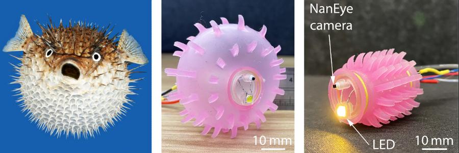 Roboty mogą też dbać o mniej zabójcze, ale podobnie nieprzyjemne miejsca – np. instalacje kanalizacyjne, czy rurociągi przemysłowe. Zwłaszcza jeżeli są długie, a ich średnice niewielkie. Mając je na myśli, inżynierowie z University of Texas w Austin wykorzystali model rozdymki. Ta ryba ma ciekawy mechanizm obronny – w sytuacji stresowej szybko wypełnia się wodą, zwiększając swój rozmiar kilkukrotnie i strosząc kolce. Naukowcy skonstruowali Robota PufferFace, który ma postać krótkiego silikonowego walca pokrytego tępymi kolcami. Jest w stanie wessać dużą ilość powietrza i się napompować. Jednocześnie zahacza kolcami o ściany rury. Autorom udało się przeprowadzić PufferFace przez 6-metrową, pionową rurę z prędkością maksymalną kilku milimetrów na sekundę.