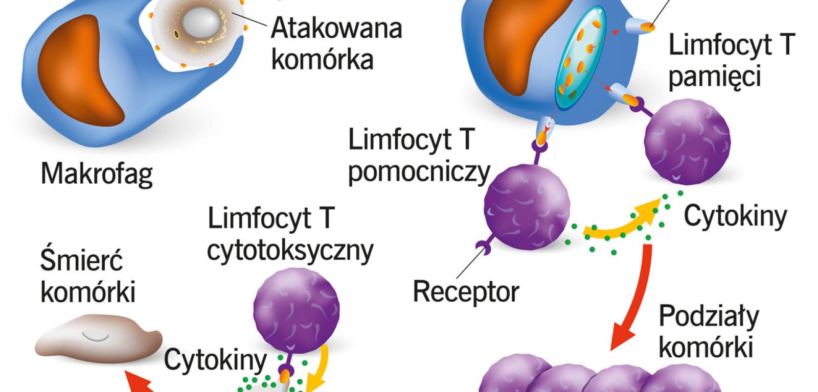 Komórki wytworzyły jednak mechanizm obronny – na swojej powierzchni prezentują fragmenty obcego białka (antygenu), wykorzystując do tego białka MHC. Sygnał SOS szybko zostaje odczytany przez patrolujące organizm limfocyty T (rodzaj komórek układu odpornościowego). Te z kolei rozpoczynają kaskadę reakcji prowadzącą do unieszkodliwienia zainfekowanej komórki. Podobne zjawisko zachodzi w przypadku komórek nowotworowych, jednak na znacznie mniejszą skalę. Otóż w przeciwieństwie do swoich zdrowych odpowiedników wykazują się one znikomym altruizmem. Nie mają ochoty ginąć dla dobra ogółu, dlatego ograniczają na swojej powierzchni liczbę flag, a więc cząsteczek MHC, które mogłyby prezentować antygeny. Co więcej, do swojego otoczenia zwabiają komórki, które wydzielają związki przeciwzapalne, wytwarzając zasłonę dymną wokół rosnącego guza.