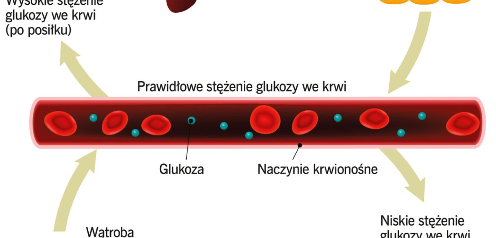 Glukoza to bardzo ważne źródło energii dla komórek. Utrzymywanie jej prawidłowego stężenia we krwi (na czczo to ok. 70–100 mg/dl) jest niezwykle istotne dla zdrowia i życia człowieka, a odpowiadają za to hormony produkowane przez komórki wysp trzustkowych Langerhansa – insulina i glukagon. Glukagon zwiększa stężenie glukozy we krwi. Insulina natomiast działa odwrotnie, ponieważ nasila transport cukru z krwi do komórek. Jest czymś w rodzaju klucza otwierającego cząsteczkom glukozy dostęp do wnętrza komórek, które następnie mogą wykorzystać ją jako paliwo. Insulina i glukagon uaktywniają lub hamują także odpowiednie szlaki metaboliczne prowadzące do zmiany stężenia cukru we krwi. Zatem u zdrowego człowieka właściwe stężenie glukozy jest w dużej mierze wypadkową procesów kontrolowanych przeciwstawnie przez wymienione hormony.