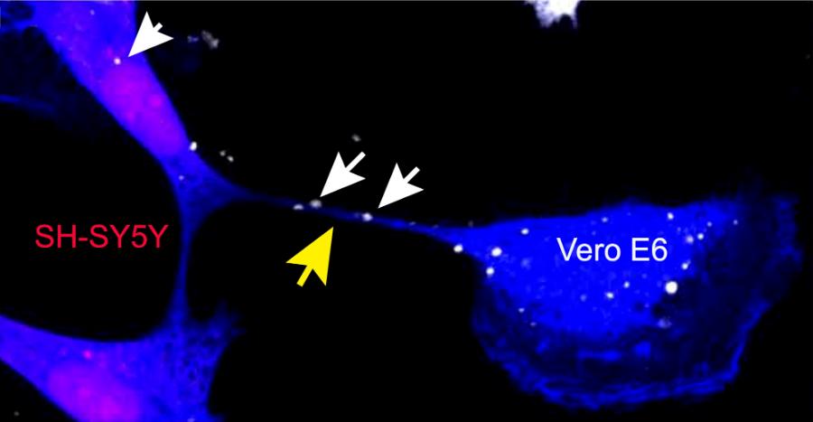 Komórki Vero E6 zakażane były wirusem SARS-CoV-2, co potwierdzano na kilka różnych sposobów. Ta sama procedura wykonywana na komórkach SH-SY5Y nie dawała efektów zakażenia i komórki pochodzenia neuralnego pozostawały negatywne na obecność wirusa. Kiedy jednak hodowano zakażone SARS-CoV-2 komórki Vero E6 razem z komórkami SH-SY5Y, to bez problemów wykazywano obecność wirusa w obu typach. Innymi słowy, komórki Vero E6 w jakiś sposób przekazywały koronawirusa komórkom SH-SY5Y. Naukowców intrygowało, jak do tego dochodziło.