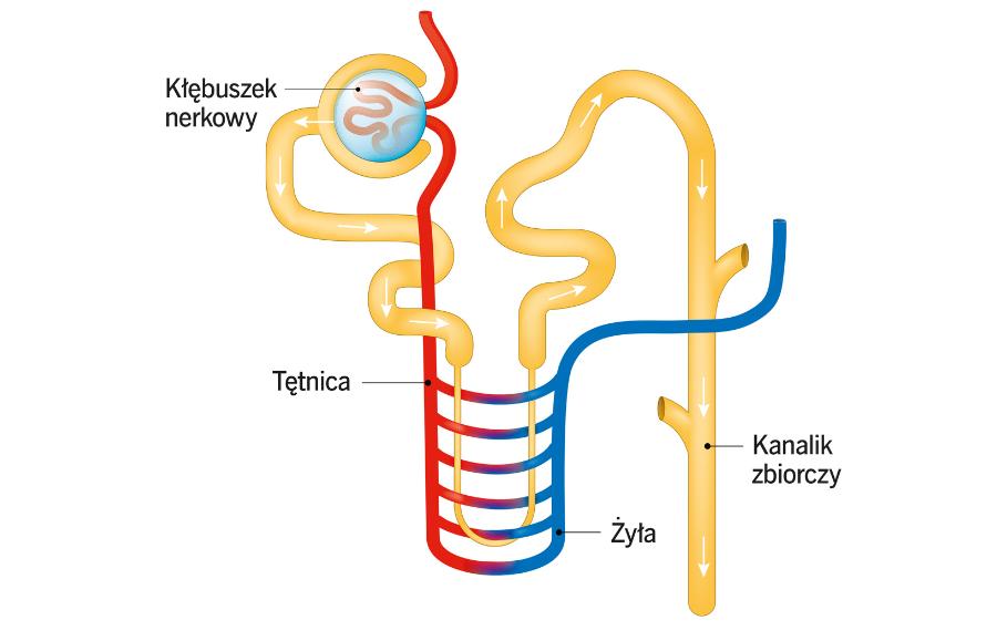 Nerki usuwają produkty przemiany materii, w tym te szkodliwe, ale też zatrzymują składniki przydatne dla organizmu. Podstawowymi elementami ich budowy są kłębuszki nerkowe, gdzie tętnice rozdzielają się na naczynia włosowate o coraz mniejszej średnicy. Dzięki takiemu dostosowaniu powstaje w tym miejscu ciśnienie napędzające filtrację. Po przejściu przez kłębuszek nerkowy sieć naczyń włosowatych łączy się ponownie w większą tętnicę. Taka rzadko spotykana struktura naczyń krwionośnych nosi nazwę sieci dziwnej. Krew z tętnicy nerkowej przepływa przez nią z szybkością 1,2 l/min. Oczywiście opis ten jest z konieczności uproszczony, nie uwzględnia całej skomplikowanej biochemii, regulacji hormonalnej (m.in. wazopresyny, reniny i aldosteronu) oraz roli białek – akwaporyn (Nobel 2003).