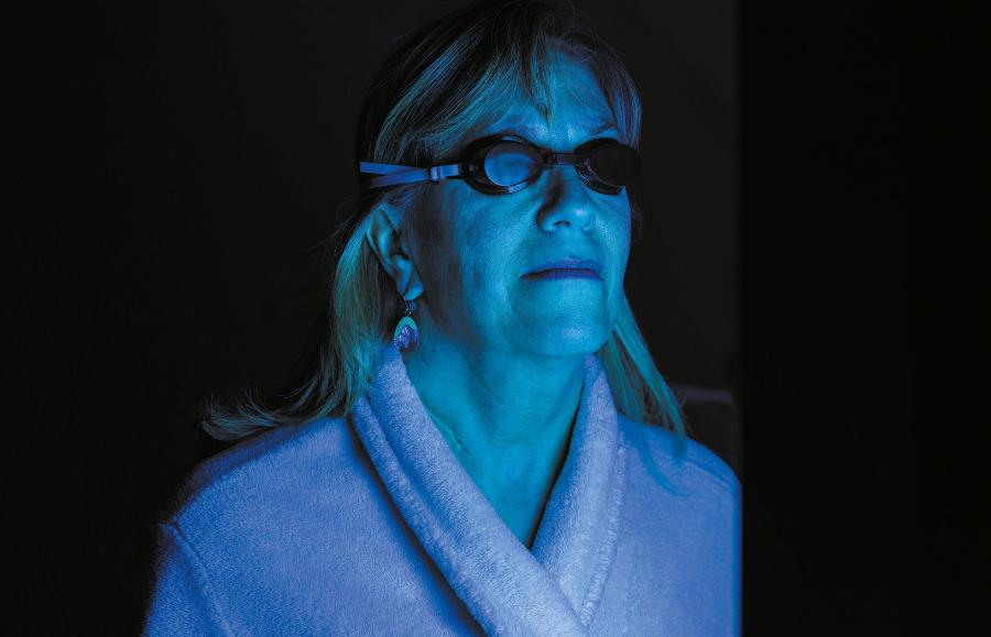 Każdego ranka Kathy Reagan Young w swoim domu w Virginia Beach bierze prysznic, wyciera się ręcznikiem, zakłada ochronne okulary i staje w odległości około 25 cm od lampy wielkości niewielkiego grzejnika. Naciska przycisk, a świetlówki zaczynają świecić upiornym, fioletowym światłem. Każdą stronę ciała wystawia na działanie promieniowania ultrafioletowego przez cztery minuty. Potem zaczyna dzień.